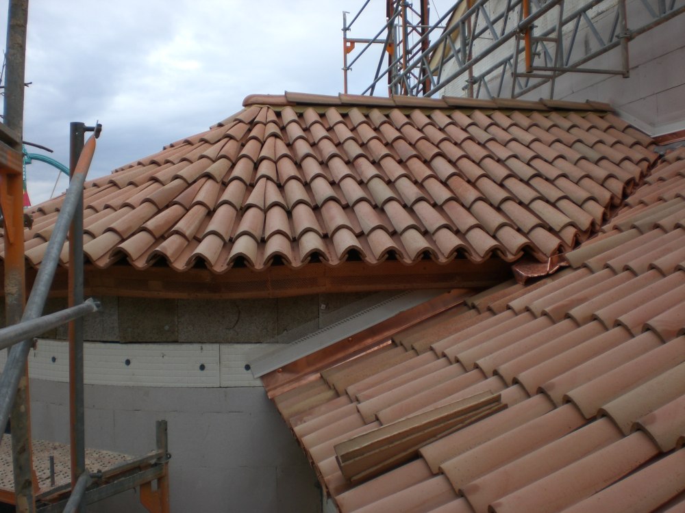 Eindeckung der Eisdiele in einem der größten Vergnügungparks Europas in Rust bei Freiburg mit Mönch- und Nonneziegeln.