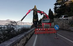 La tempesta Vaia ha portato via il pontile nell’autunno 2018. Sui pilastri in cemento esistenti abbiamo ricostruito la travatura nuova in legno di larice. I primi travi abbiamo posato con l`assistenza di una autogru e dei gommoni.