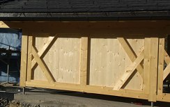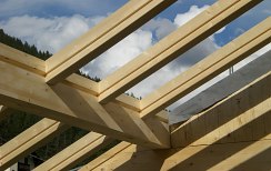 Il tetto è stato costruito con travatura a vista, isolato con pannelli in fibra di legno e coperto con tegole in cemento.