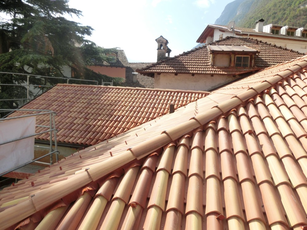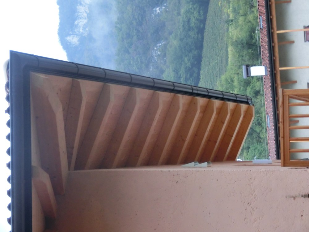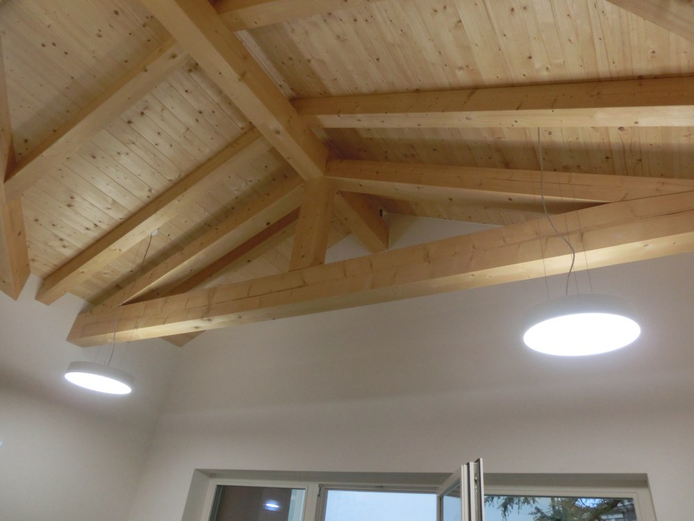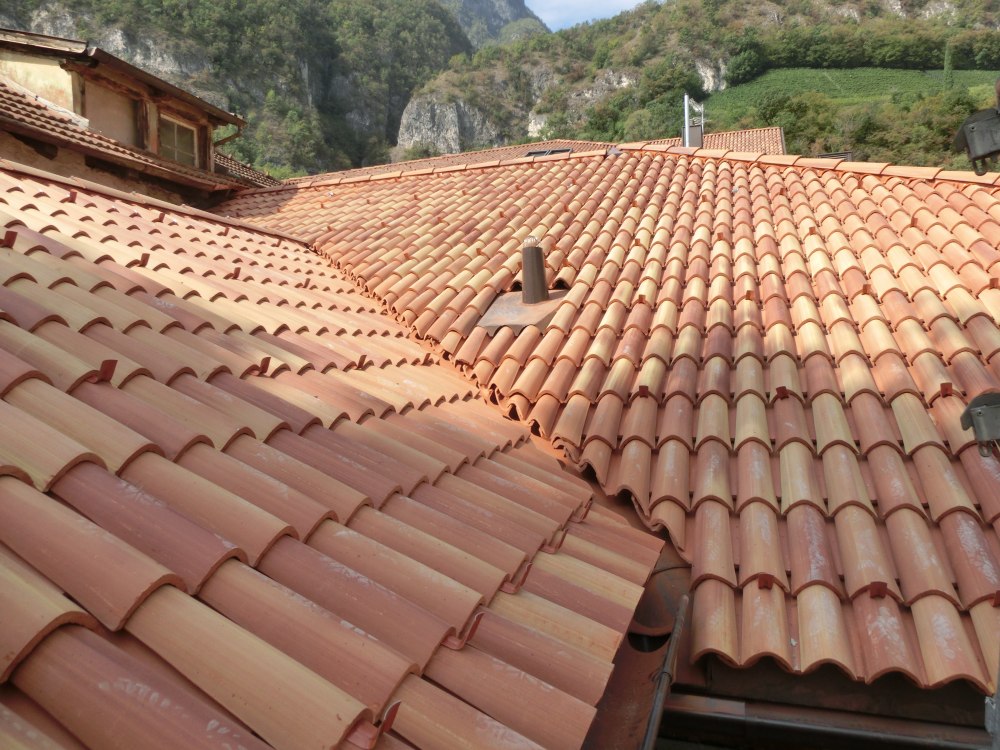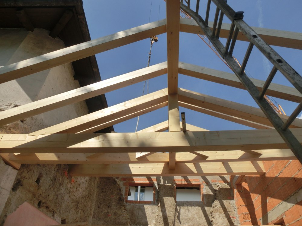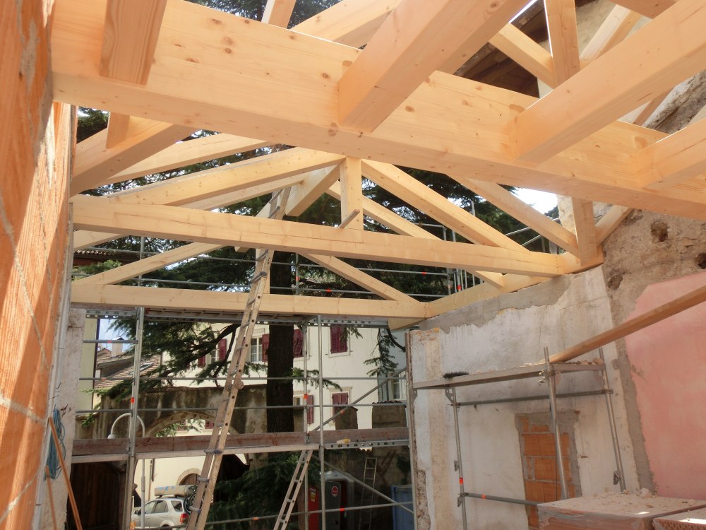 Ristrutturando la casa Pförtner a Magrè il tetto è stato sostituito. Il nuovo tetto in legno d`abete è stato adeguato alla muratura esistente e poi isolato con la fibra di legno per proteggere i locali sottostanti dal surriscaldamento estivo e raffreddamento invernale. Il tetto è stato coperto con i coppi, caratteristici della zona.