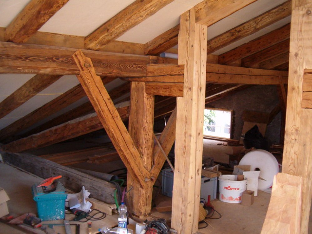 La travatura della vecchia casa è stata risanata e modificata riuscendo a soddisfare sia le visioni dell'architetto che le esigenze del committente.