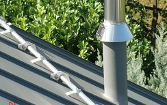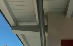 La copertura di questa abitazione a Termeno è stata eseguita in lamiera d'alluminio grigio chiaro. I rivestimenti di parete della parte centrale sovrastante sono stati combinati con lamiera d'alluminio rossa. Gli stessi materiali sono stati utilizzati per l'adiacente garage. In questo progetto edilizio ci siamo occupati anche dei lavori di carpenteria.