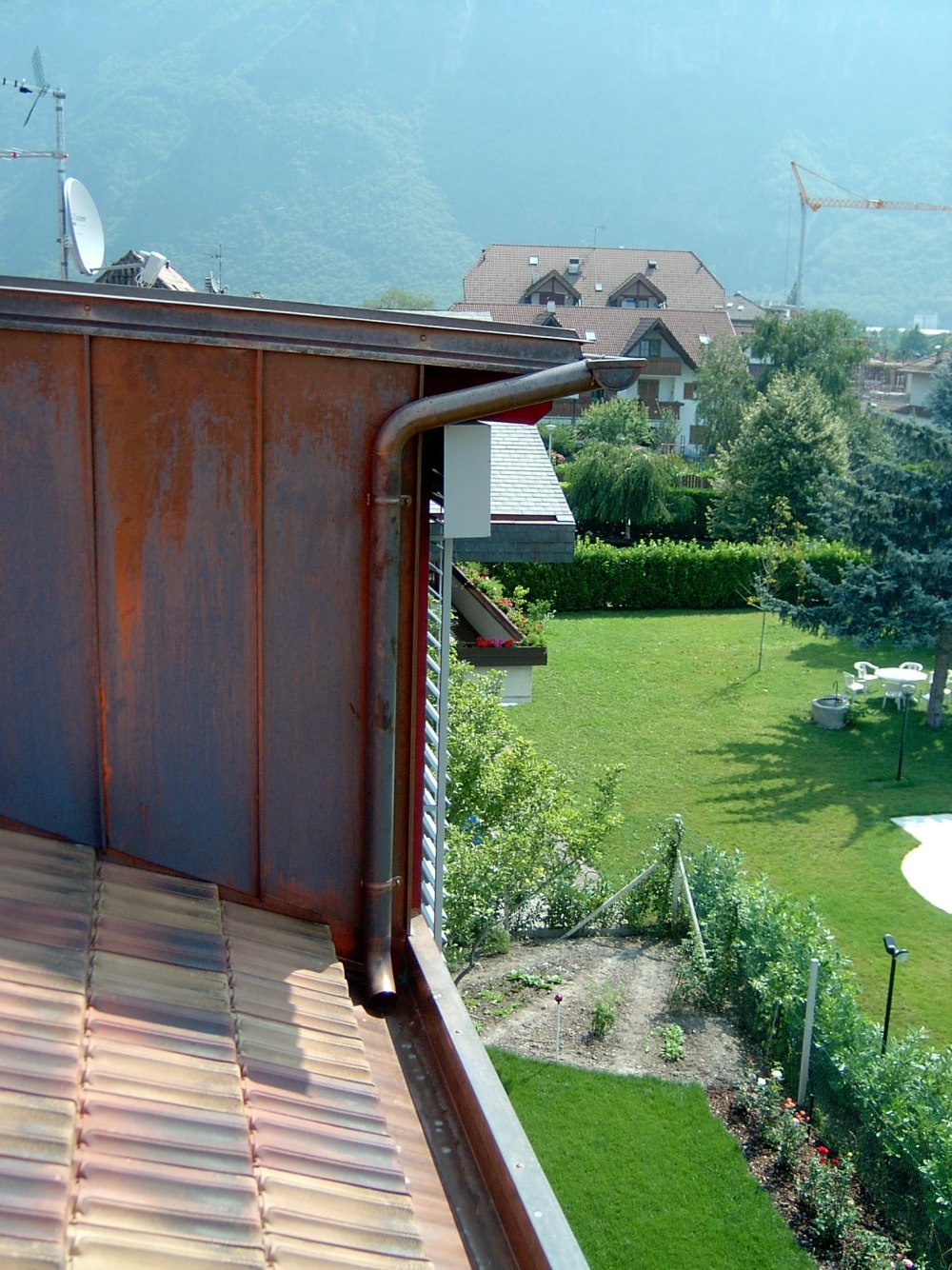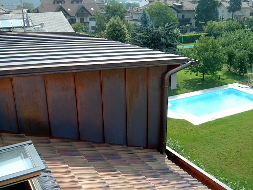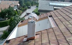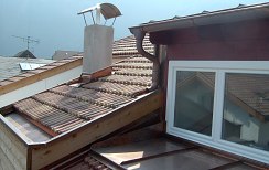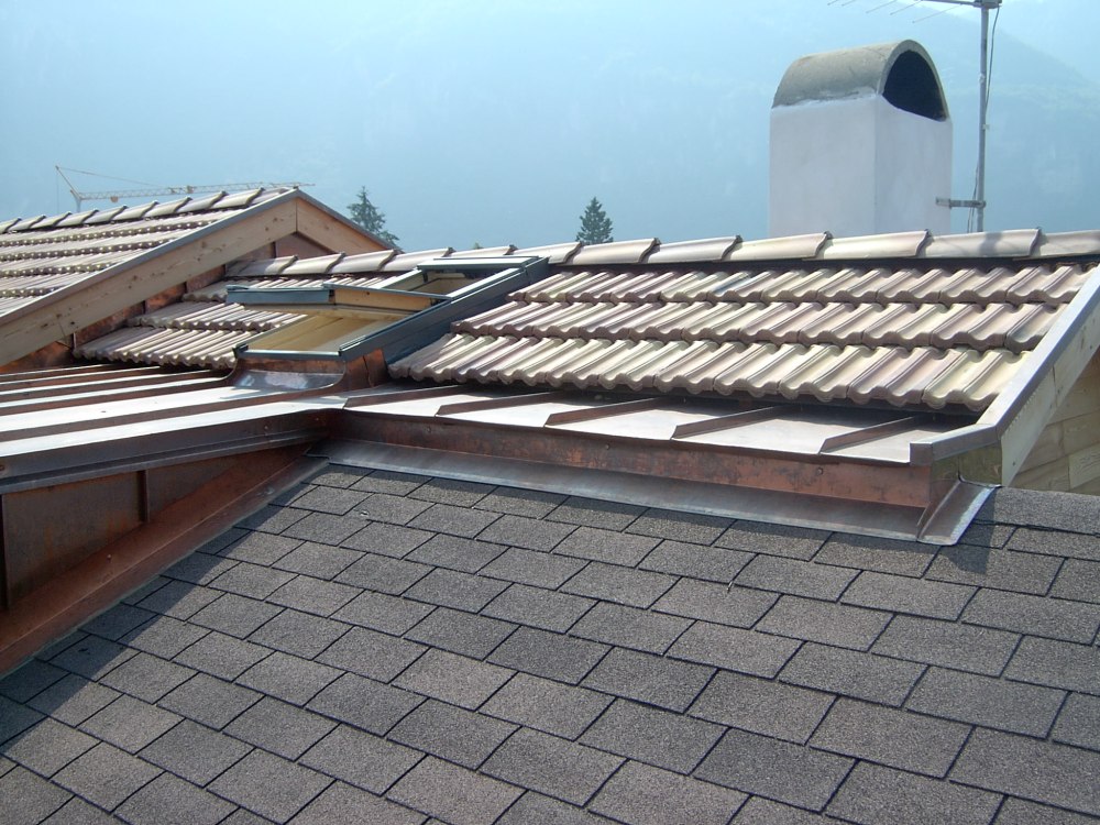 Nelle immagini è raffigurato un tetto coperto a tegole marsigliesi: si vedono una gronda incassata e tutti i lavori di raccordo ai camini, lucernari e tavola di frontone alto, nonché la laminatura della parete laterale e del tetto dell'abbaino.
