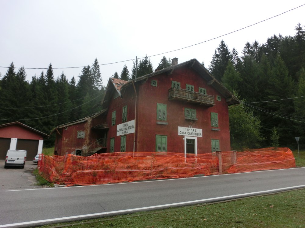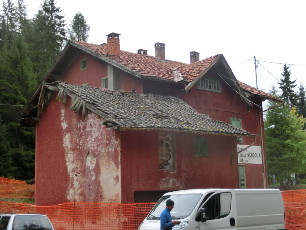 In uno stato molto desolante era questa casa cantoniera vicino al passo della Mendola. Appena in tempo siamo riusciti a salvare una parte della struttura esistente e sostituendo i travi marci con travi di recupero siamo riusciti a mantenere l`aspetto originario. Il tetto è stato isolato con fibra di legno e coperto con tegole marsigliesi in cotto.