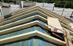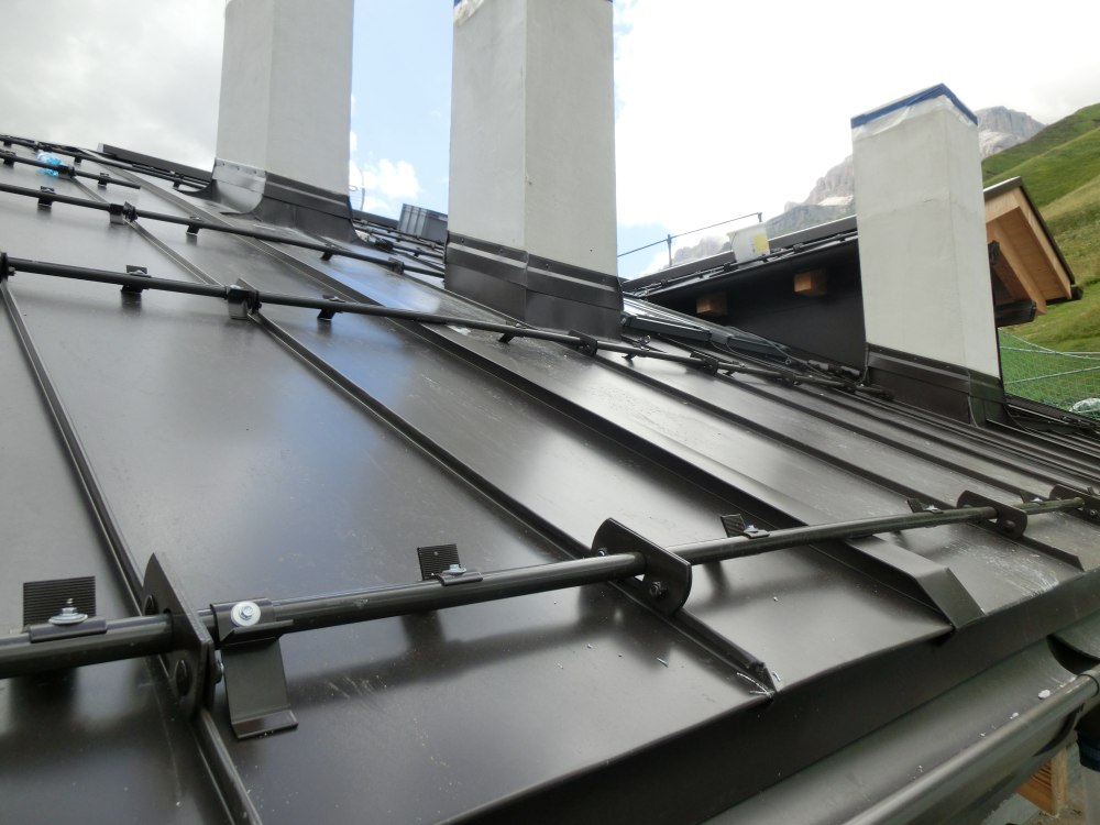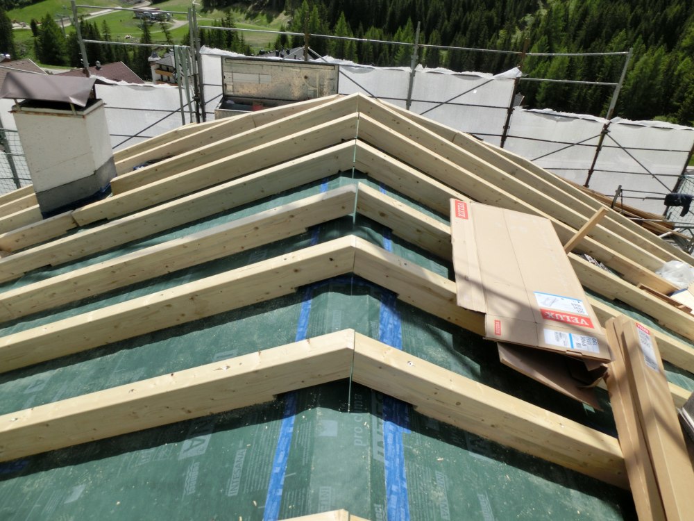 Das Dach des Kondominiums La Jaddira in Arabba wurde 2019 grundlegend saniert. Die Dachstruktur wurde verstärkt, die Holzfaserdämmung bietet im Sommer als auch im Winter maximalen Komfort und die neue Blecheindeckung, ausgeführt mit der Doppelstehfalztechnik, schützt gegen jedes Unwetter.