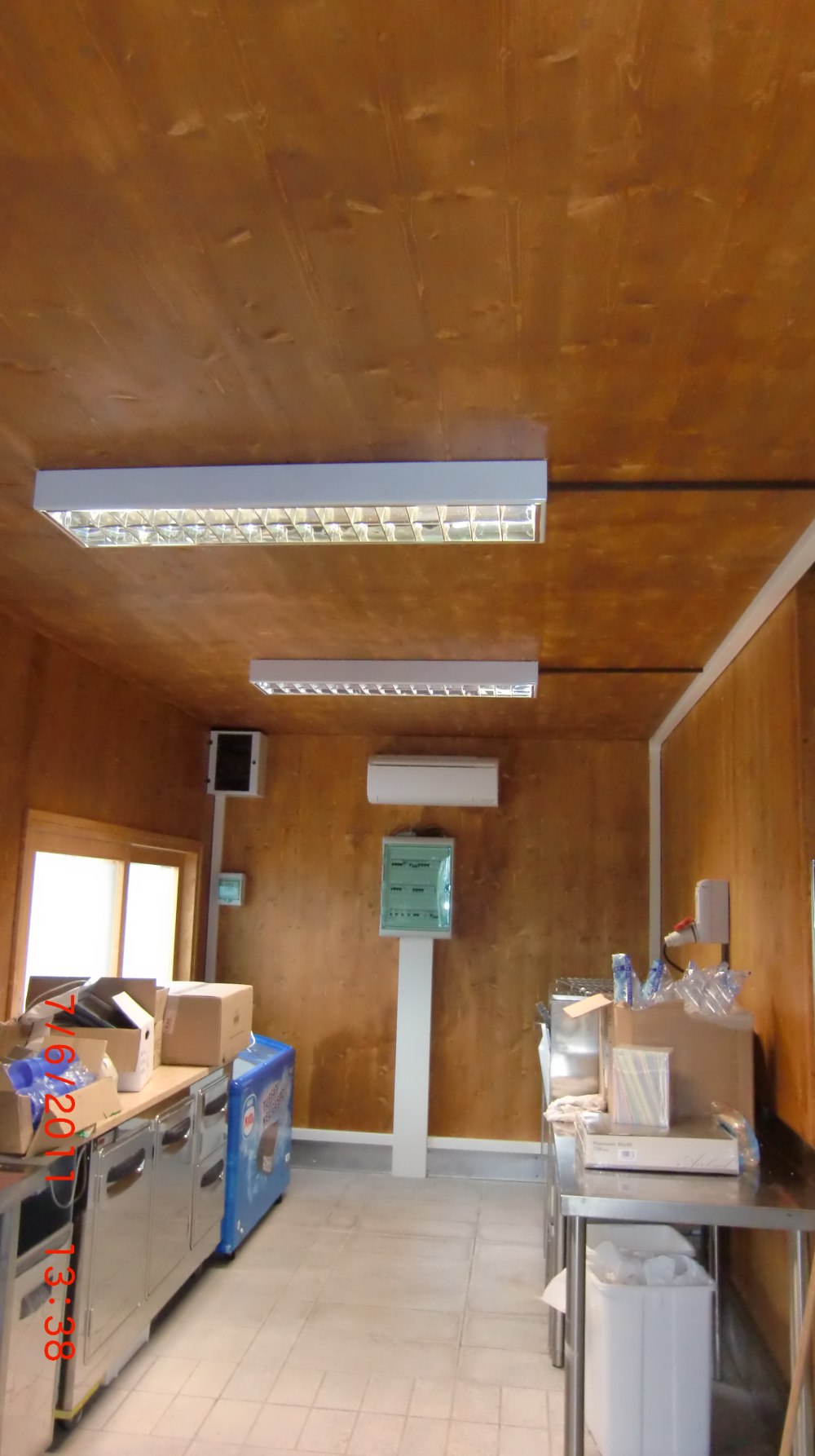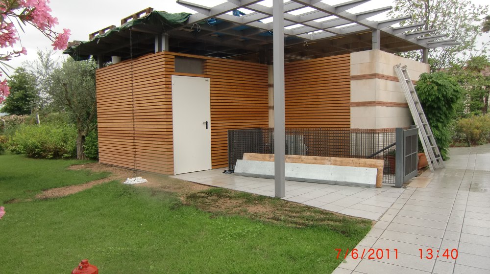 Damit die Angestellten nicht nur im Hotel, sondern auch am Kiosk des Swimmingpools ein angenehmes Raumklima haben, haben wir sowohl die Decke, als auch die Wände gedämmt und mit Holz verkleidet.