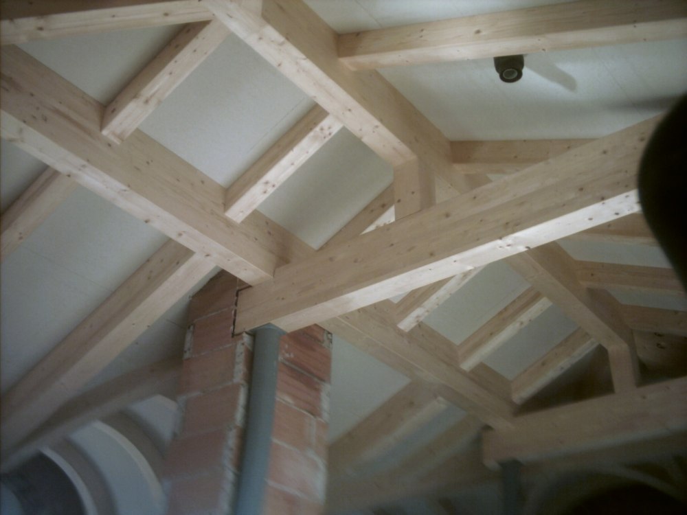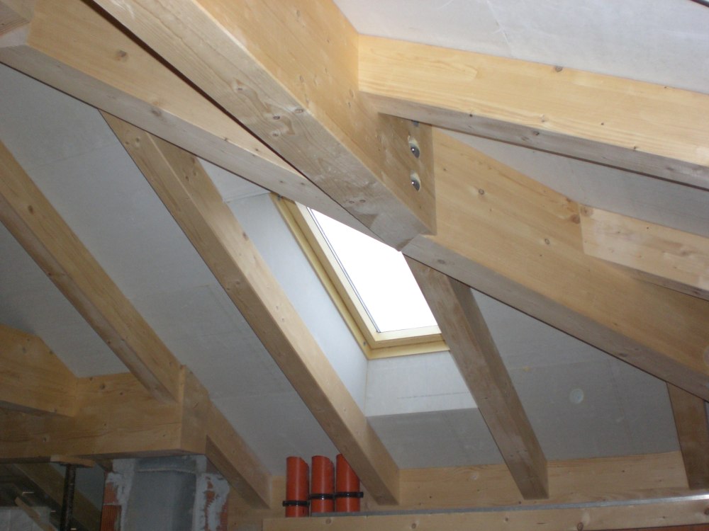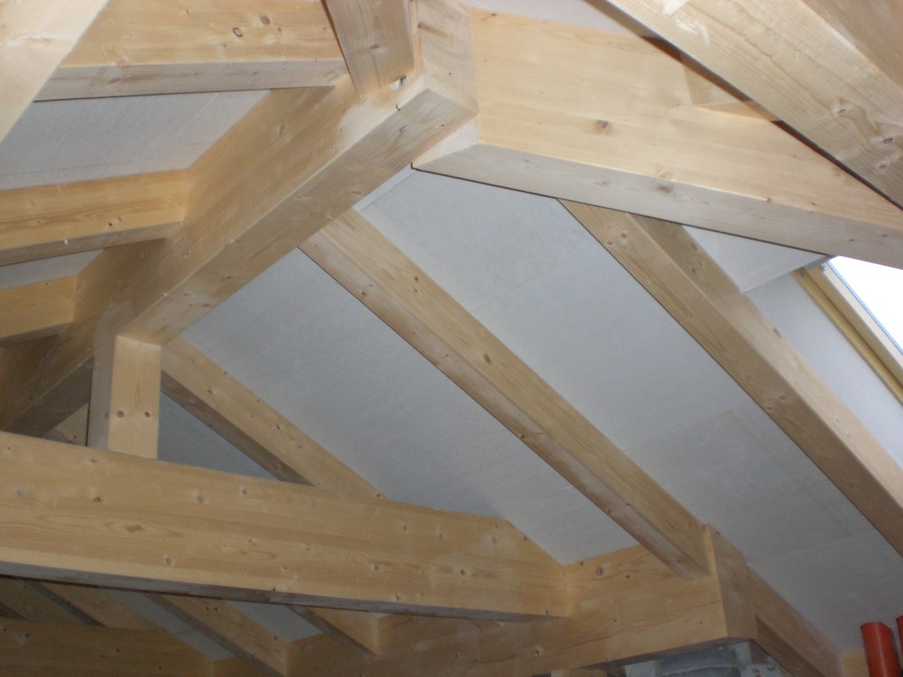 Der Dachstuhl eines kleinen Einfamilienhauses in Cavareno wurde mit Fichtenholz ausgeführt.