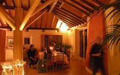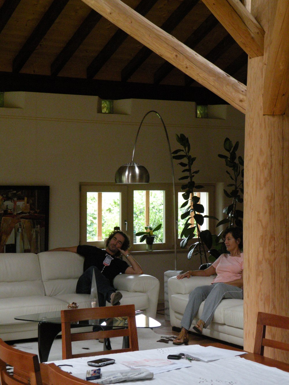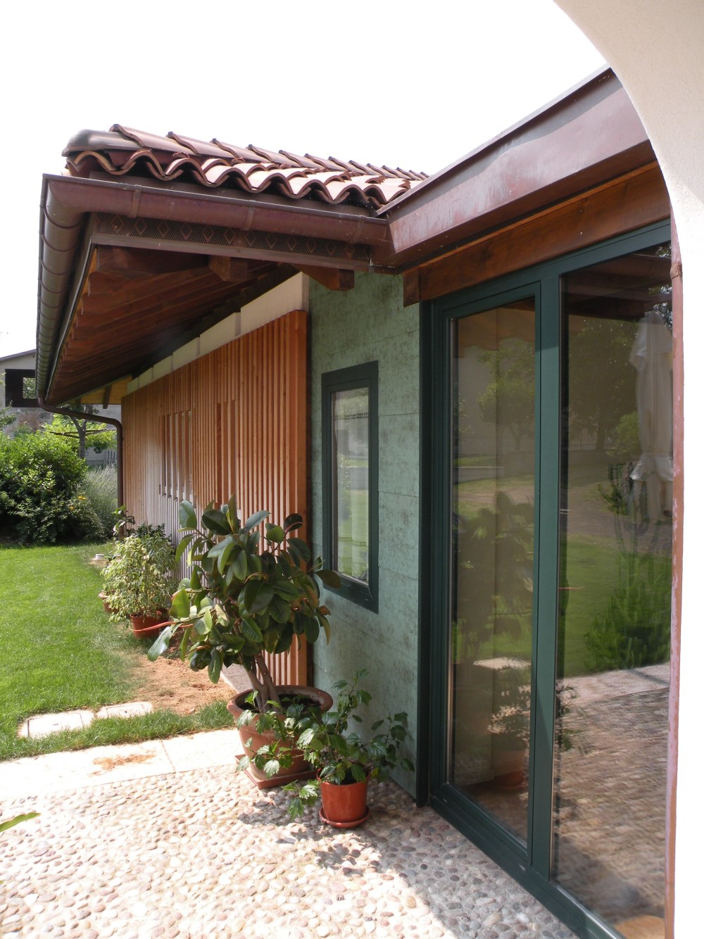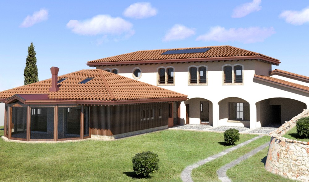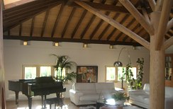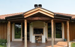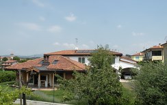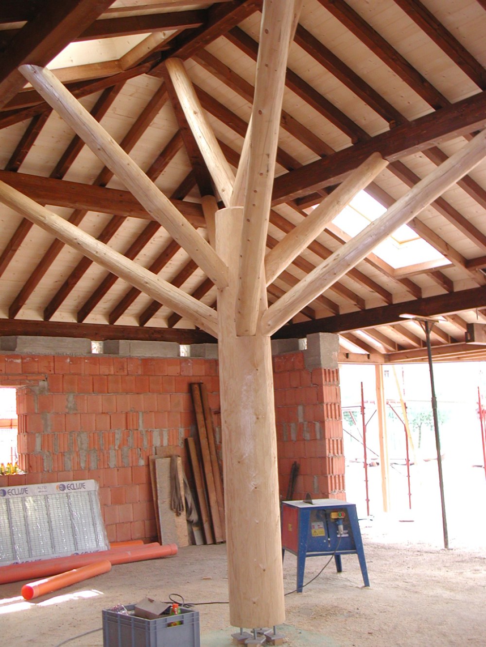 Nicht alltäglich ist der Dachstuhl in Santa Maria di Negrar, da das Dach von einem sogenannten Baum getragen wird, welcher sich in der Mitte des Wohnzimmers befindet. Ungewöhnlich ist auch der Kontrast zwischen den dunklen Dachsparren und den hellen Profilbrettern. Die Spenglerarbeit wurde in Kupferblech ausgeführt und das Dach mit neuen Mönch und Nonneziegeln eingedeckt.