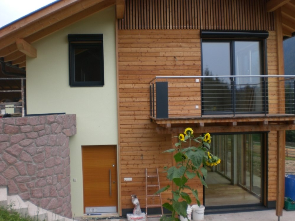 Die Fassaden wurden von uns mit Holzfaserplatten gedämmt und in verschiedenen Weisen verkleidet.