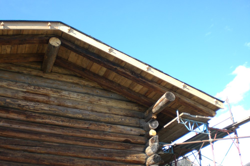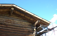 Die Wände wurden als Ständerbau ausgeführt, gedämmt und mit Holzplatten verkleidet. Die Dachinnen sind aus Lärchenholz, verkleidet mit Kupferblech, ebenso sind alle anderen notwendigen Anschlüsse aus Kupferblech gefertigt worden. Das Dach haben wir mit den traditionellen Legschindeln eingedeckt und dabei auch die Schneestangen mit den Steinen angebracht.