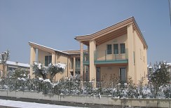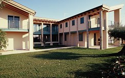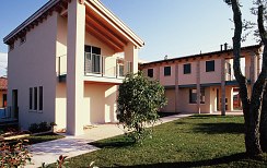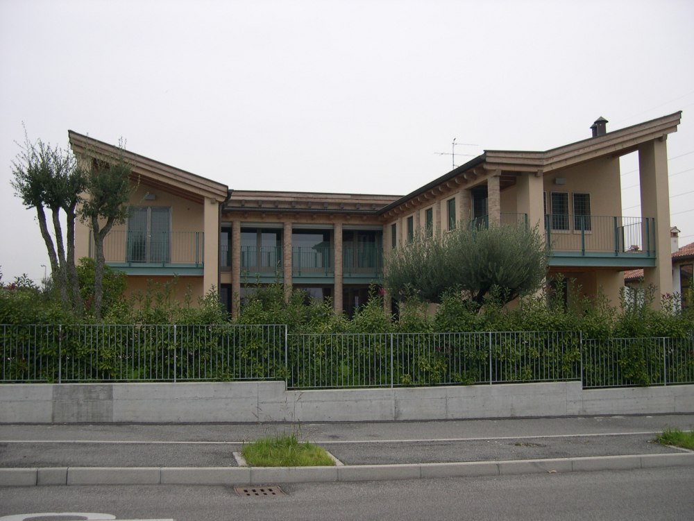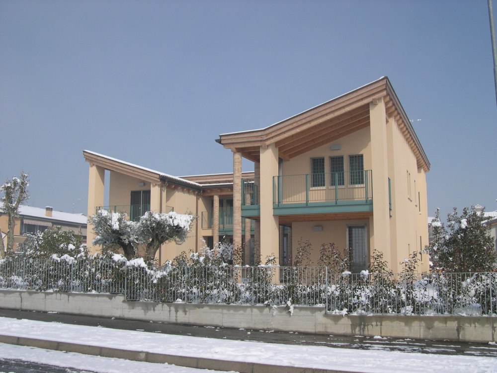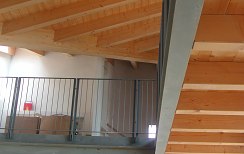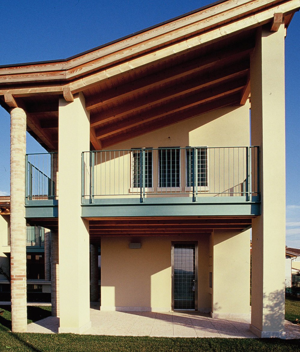 Dieser Neubau in Bussolengo wurde als Sicht-Dachstuhl in Fichte ausgeführt und mit Holzfaserplatten gedämmt, damit das Dach nicht nur gegen Kälte im Winter, sondern auch gegen Hitze im Sommer schützt.